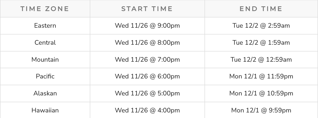 At this time of year, our team experiences a higher than usual ticket volume. To avoid longer wait times, see below for answers to customers' frequently asked Black Friday questions!